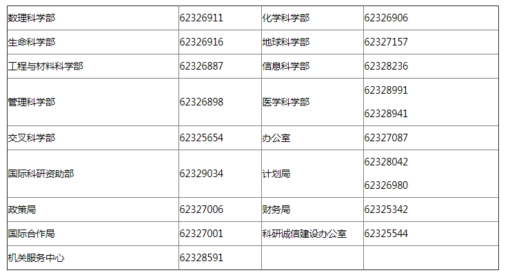 2. 各部门咨询电话